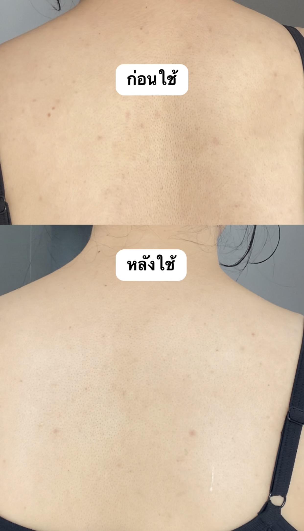 รอยดำจากสิวที่หลังดีขึ้นมากกกกกกก ถ่ายไว้เห็นผลชัดเลย รอยสิวจางลง ผิวขาวขึ้นด้วย ดีมากกกก อยากบวชให้เลยยยยย