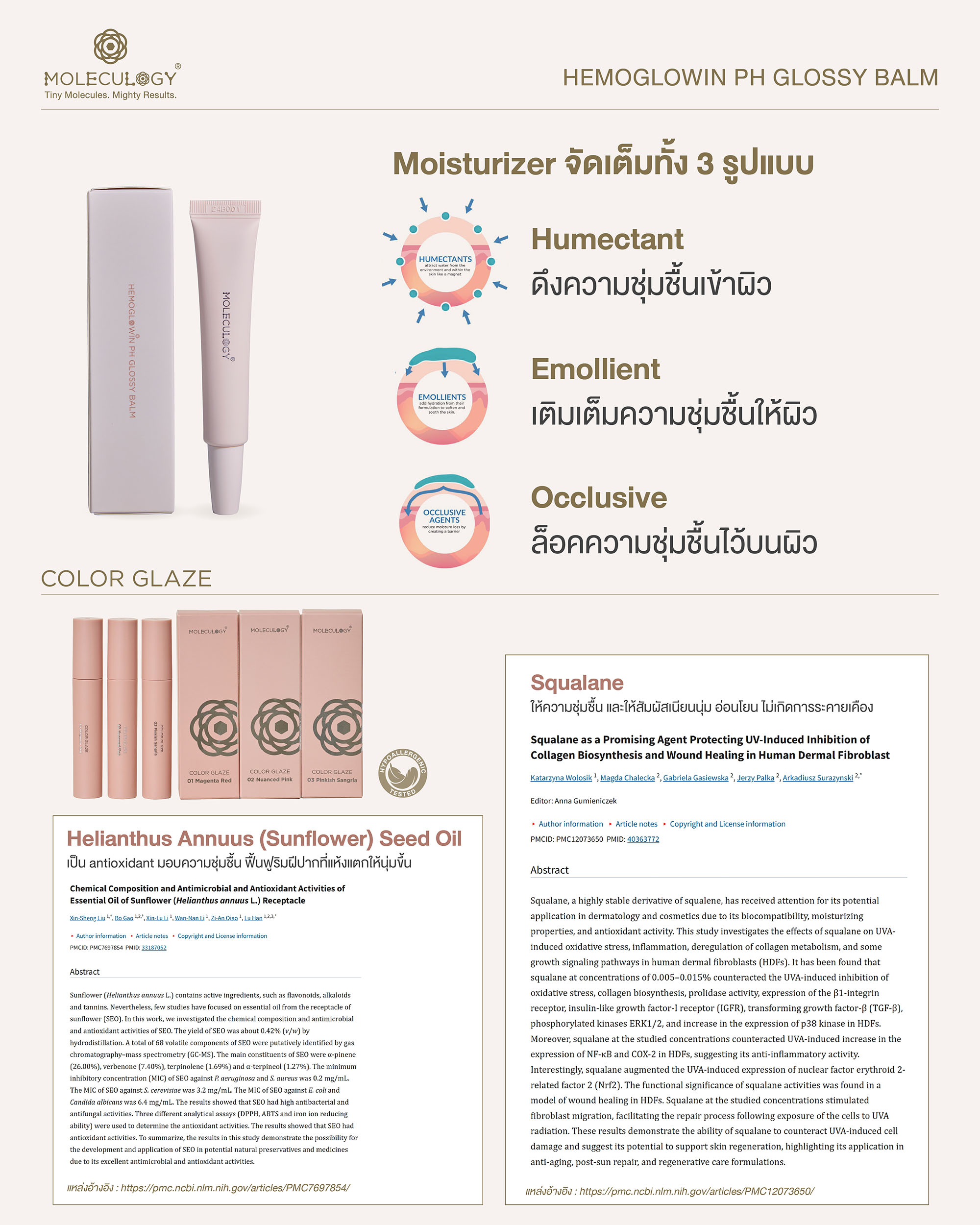 -Moisturizer จัดเต็มทั้ง 3 รูปแบบ : Humectant ดึงความชุ่มชื้นเข้าผิว, Emollient เติมเต็มความชุ่มชื้นให้ผิว, Occlusive ล็อคความชุ่มชื้นไว้บนผิว